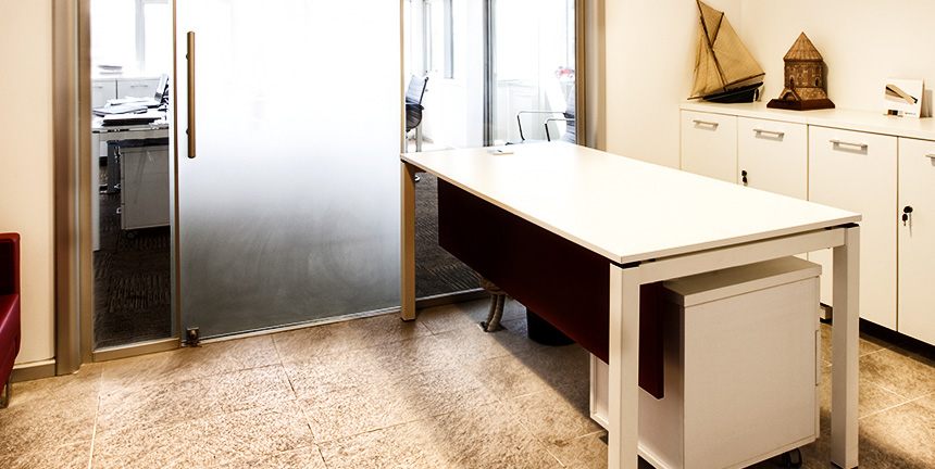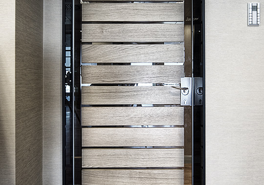 The door module is designed as one piece as much as possible up to the ceiling, thus strengthening the space and adding depth.