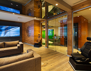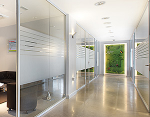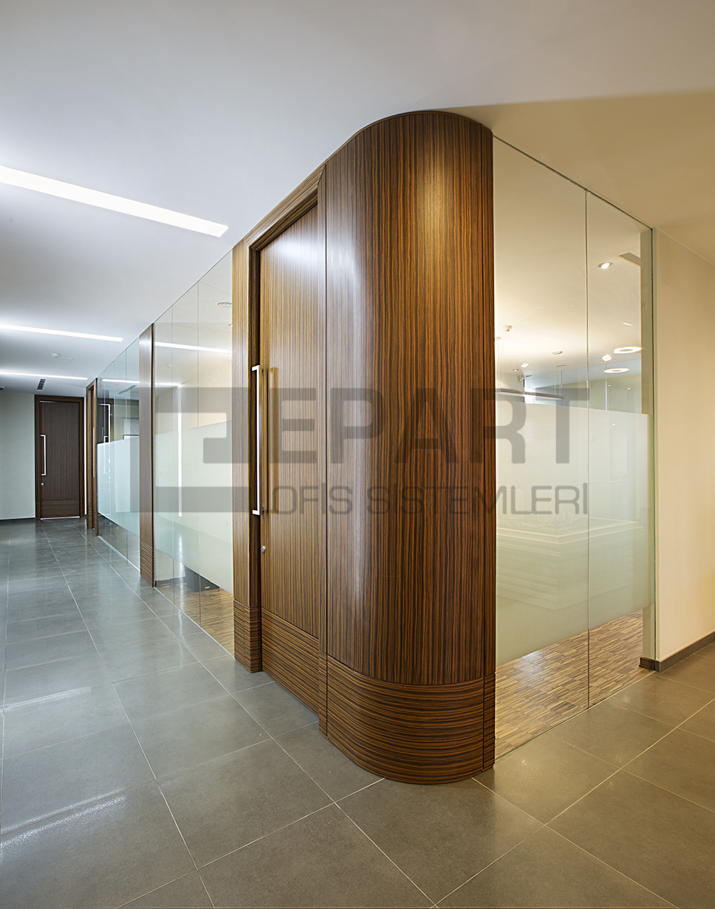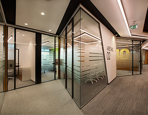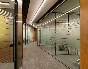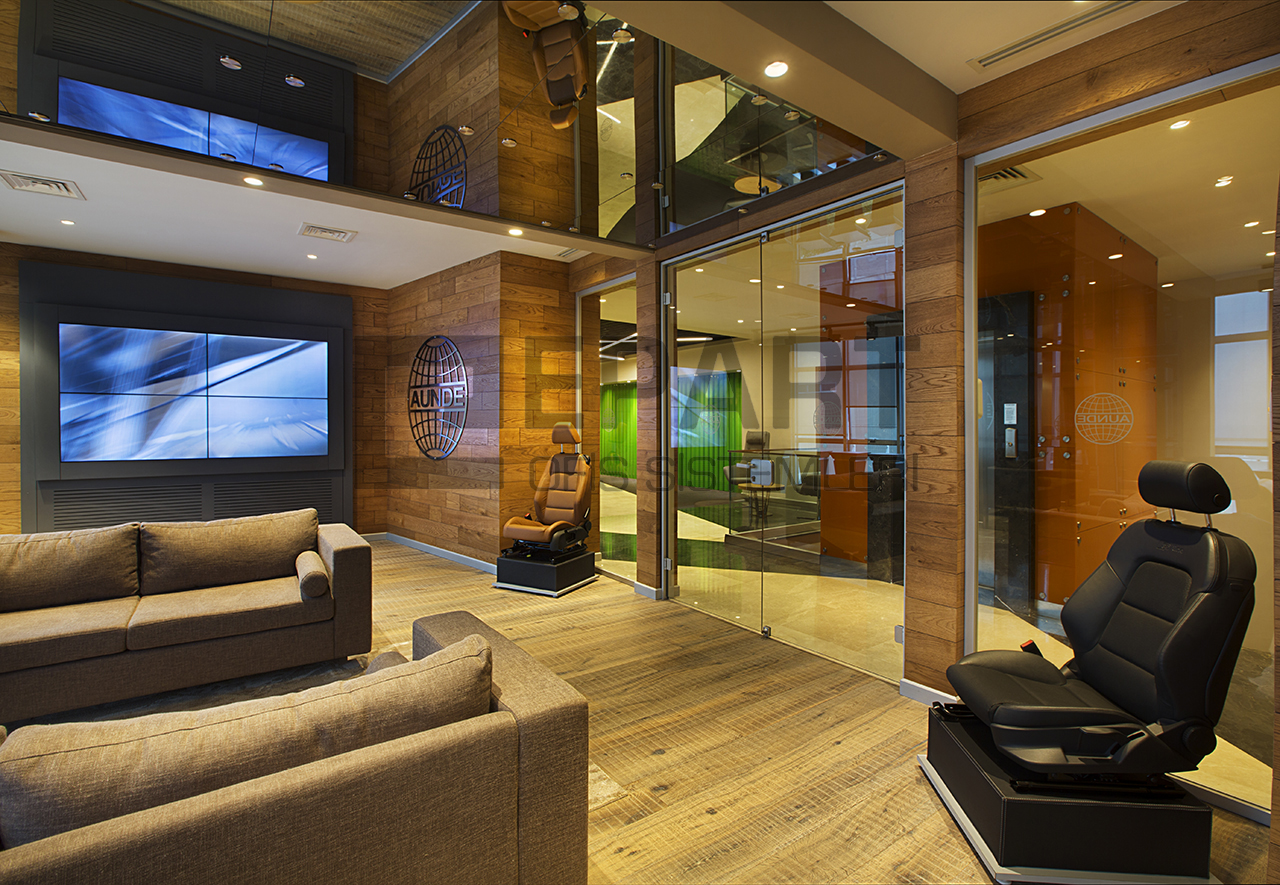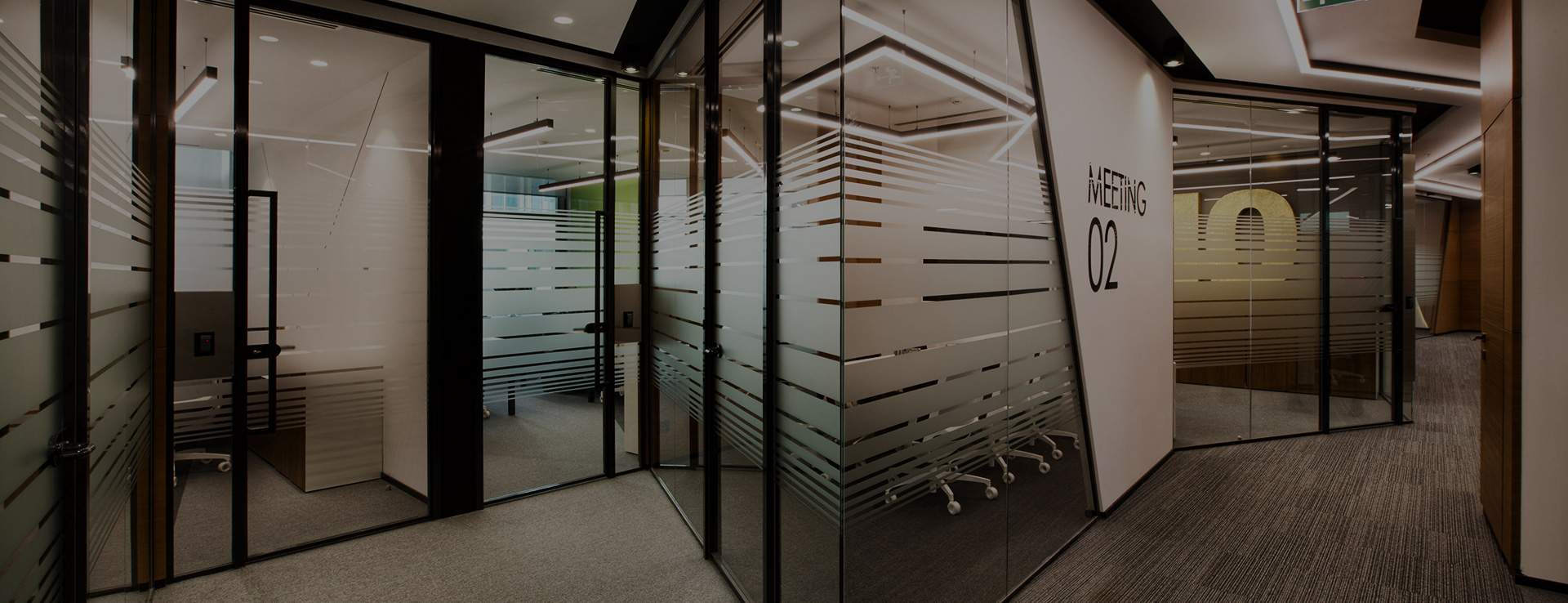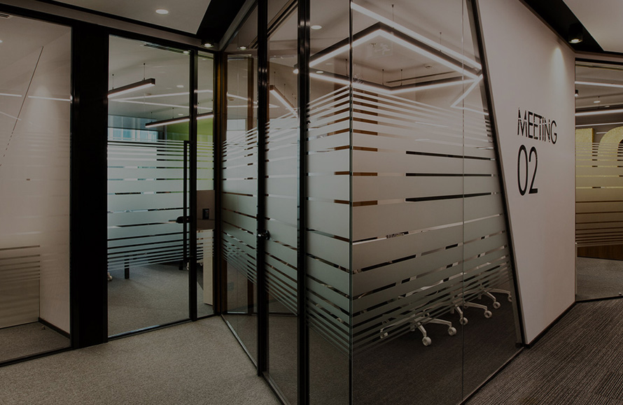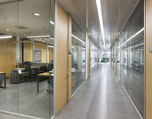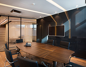 The system is designed with visual simplicity in mind for intense work pace. This is solved by the minimum profile thickness of the walls, ceiling and floor, ensuring the simplicity of the space.