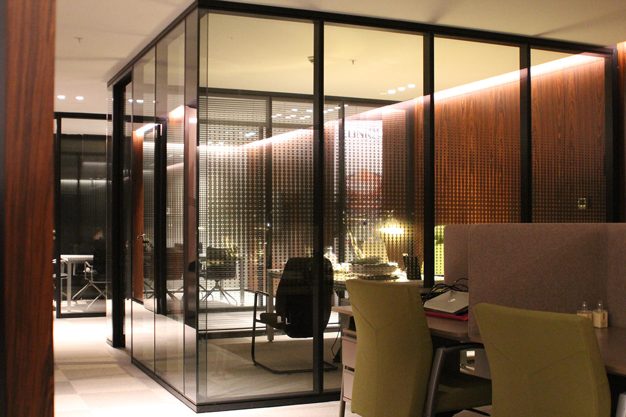 Kasetli sistem bölme duvarlar da Şeffaflık; çalışanların birbirleriyle iletişim içinde olmasını sağlar.